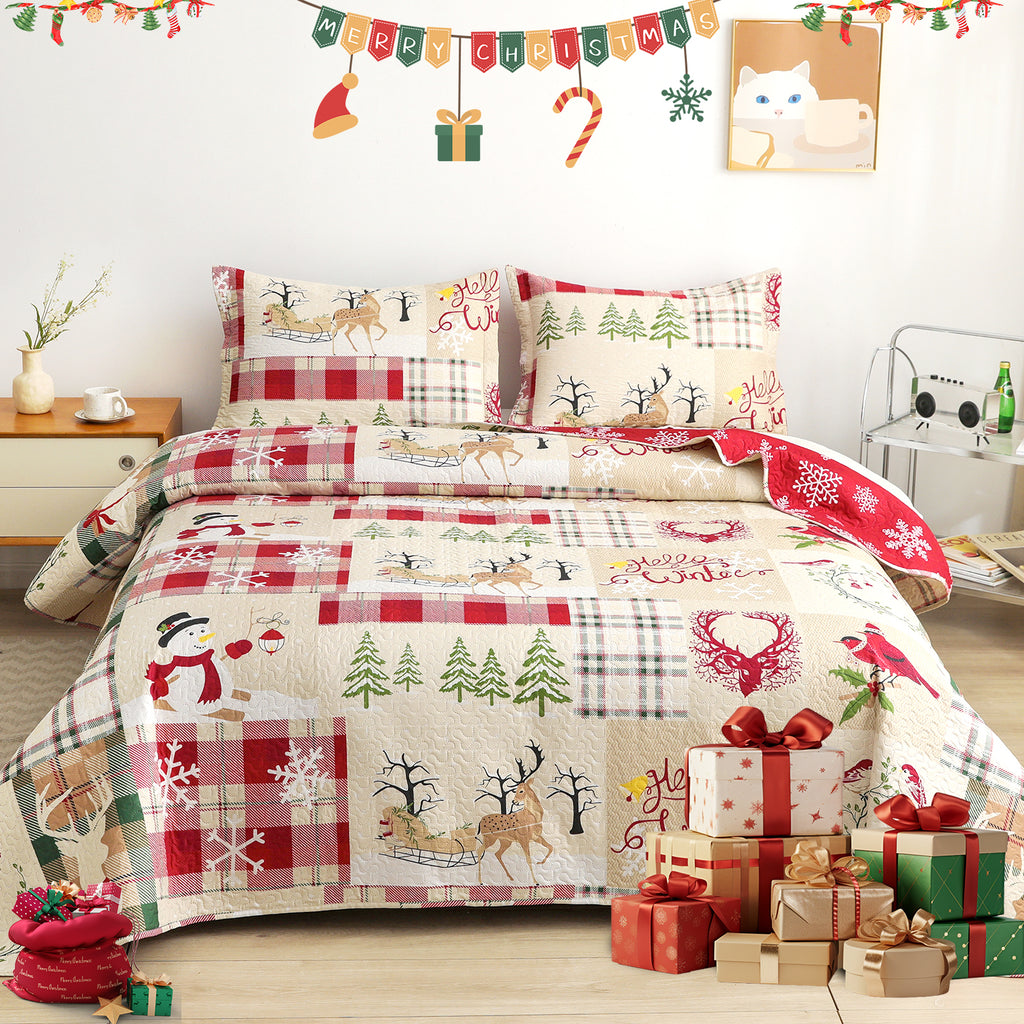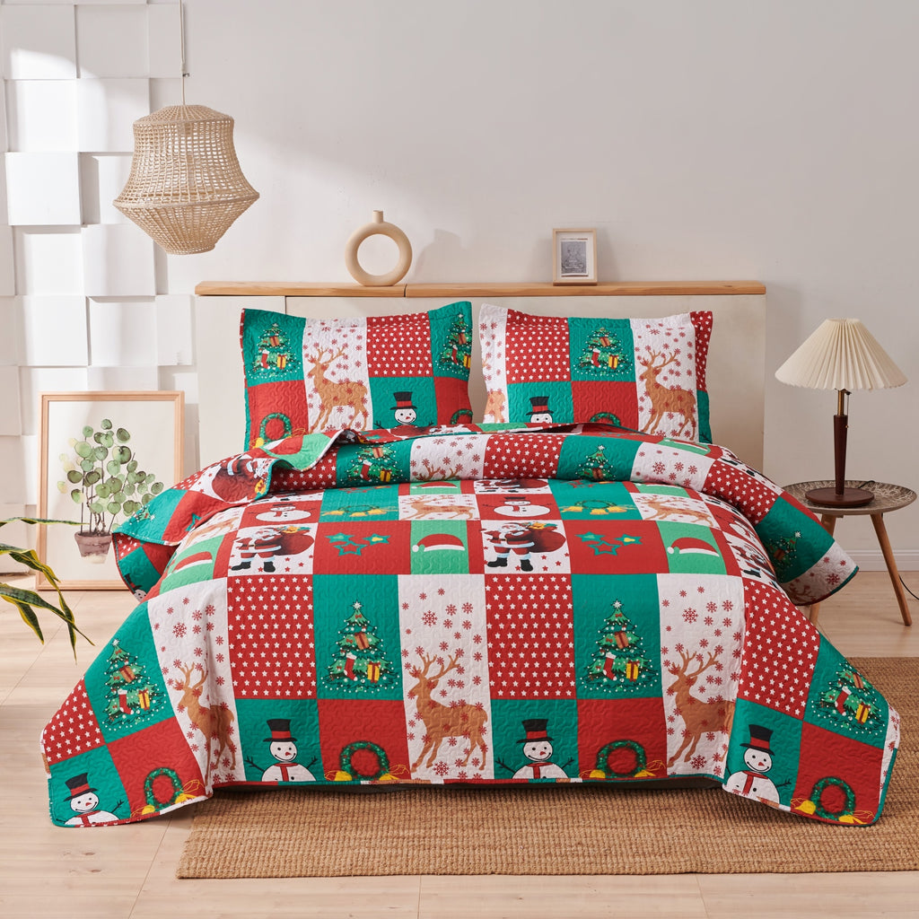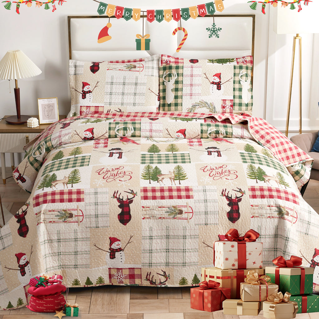 Christmas Quilts Set Twin/Queen/King Size Quilt Microfiber Bedspread Coverlet Set