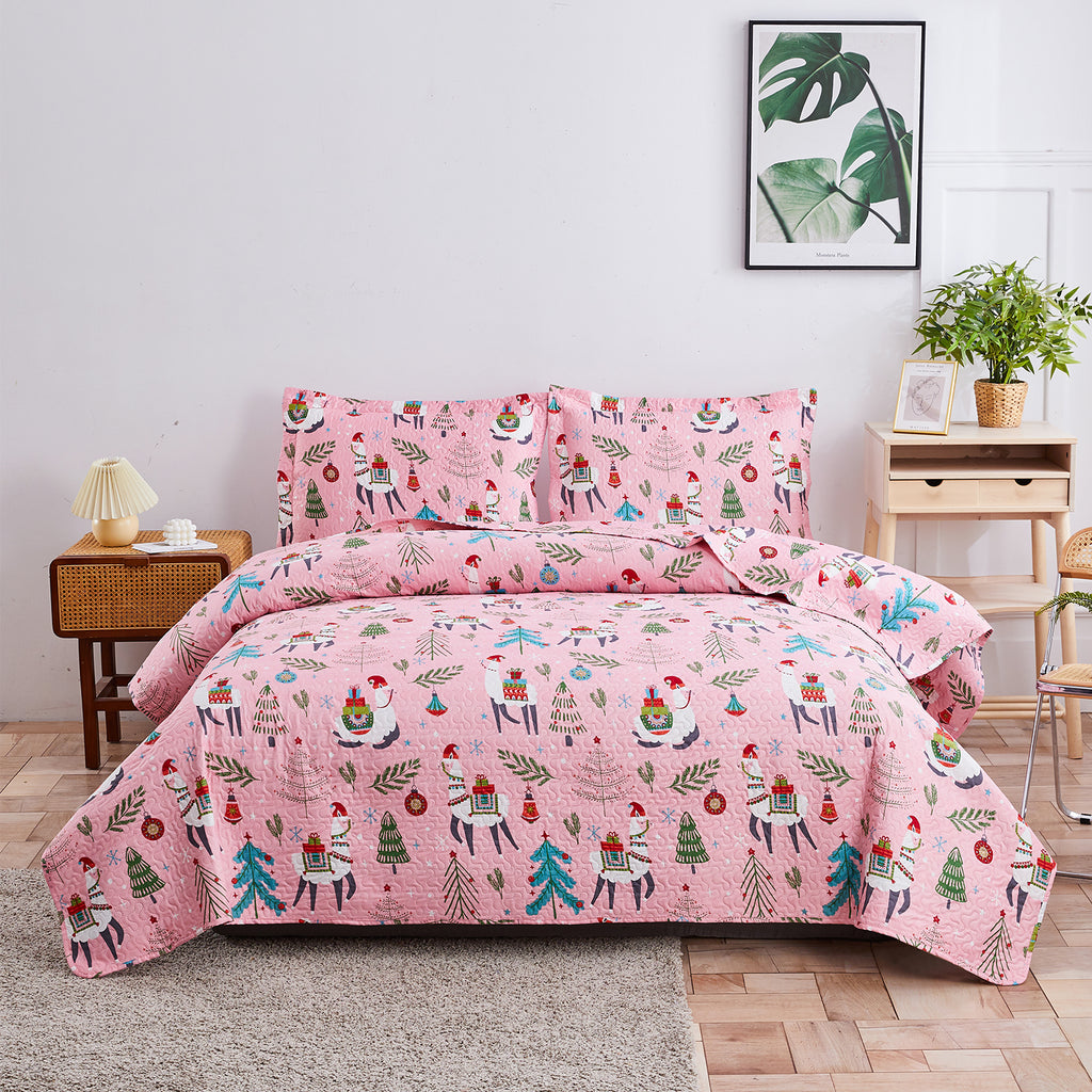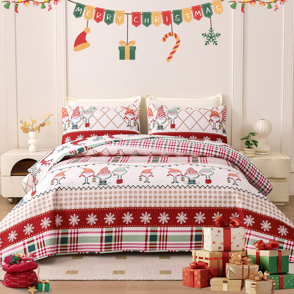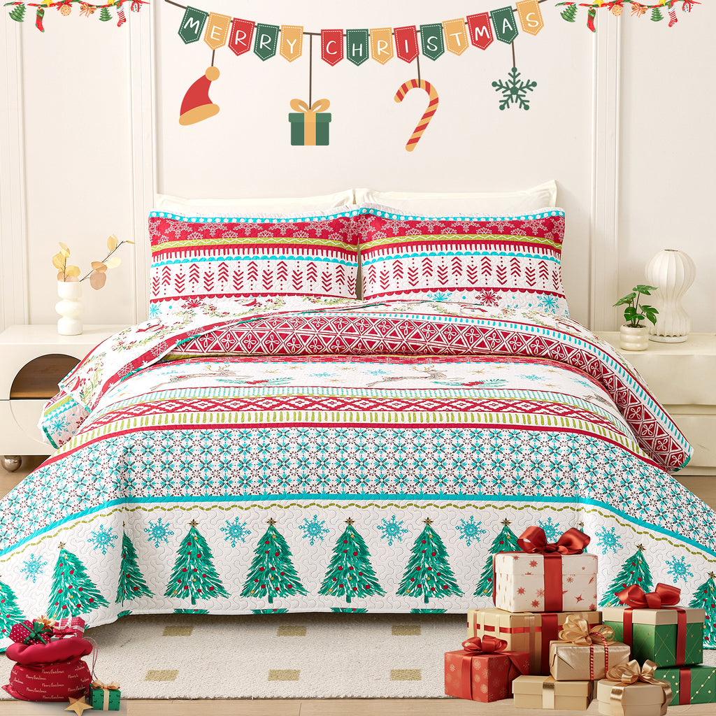 Christmas Quilts Set Twin/Queen/King Size Quilt Microfiber Bedspread Coverlet Set