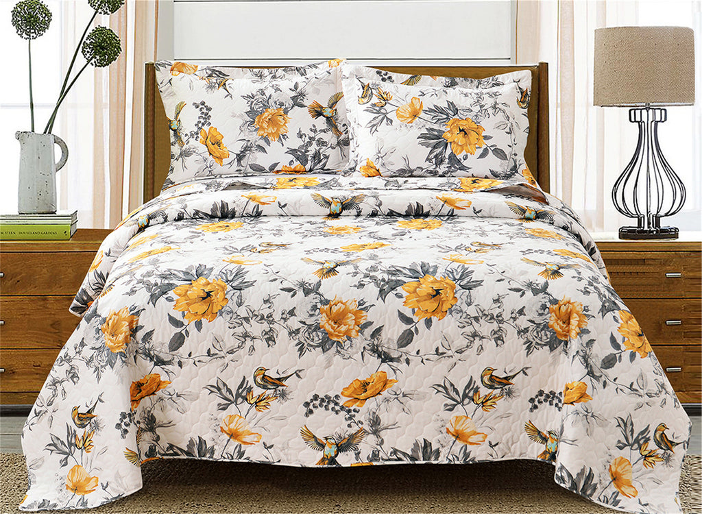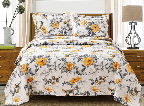 Jessy Home 3-Piece Quilt Coverlet Bedding Set Full/Queen Size Bedspread Floral Pattern 3 Piece(1 Quilt + 2 Pillow Shams)