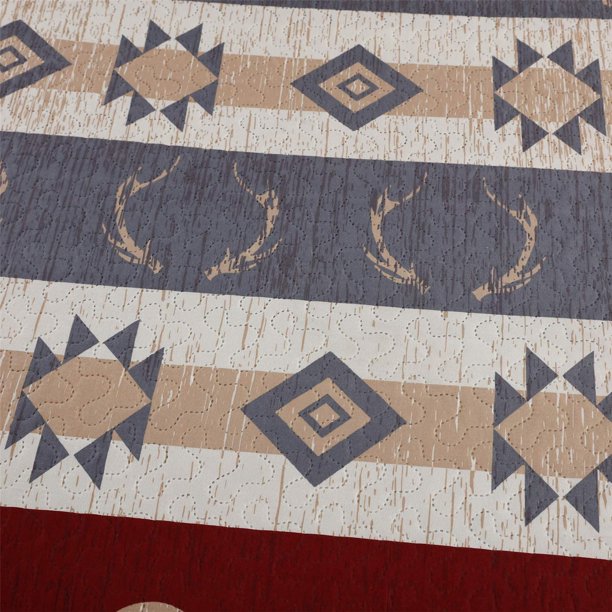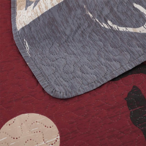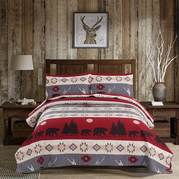 Lodge forest bear bedspread set, red and gray rustic theme with bear, trees and sunset. The rustic bedding is a rural style. Twin bedspread is lightweight. It can be placed in the bedroom at home or take in the vacation. It is suitable for hot summer night,also can be used as bed sheet or blanket in winter,the lightweight antler bear quilts is very easy to move your body freely when sleeping at night.