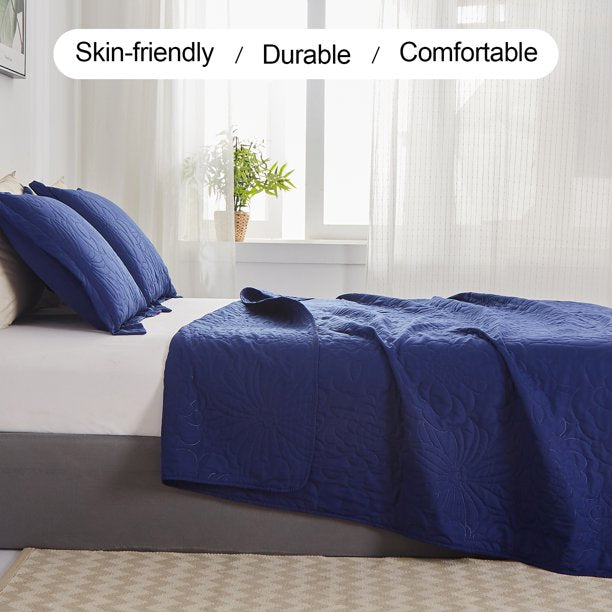This navy solid color twin bedding set is made of microfiber covering and filling, lightweight, reversible and suitable for all seasons.This bed cover is designed in pure navy with a flower pattern printed on it,and can be used as a quilt, bed cover, air conditioning quilt, sofa cover. Wash bedspread coverlet set before use. Machine wash in cold water is to be adjusted to a gentle mode. Tumble drying is low temperature.Jessy Home's products are designed to provide customers with durable, cost-effective, beautiful and diverse bedspread sets, so that customers have a better sleep experience.