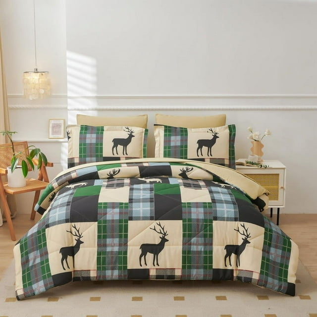 7-Piece plaid patchwork quilt ultra soft microfibers home lightweight reversible bedspread quilt set. This queen bedspread consists of different colors and a patchwork plaid. Dark Green Queen Bed in a Bag is Crafted from 240GSM brushed microfiber insert, the cloud-like down alternative filling creates a fluffy and lightweight comforter, providing just the right amount of warmth and comfort for the best sleep all year round.Fabric edge is perfectly stitched, tight stippling stitch and seams for durability can protect the inner filling, will hold up through washing and will not fade.