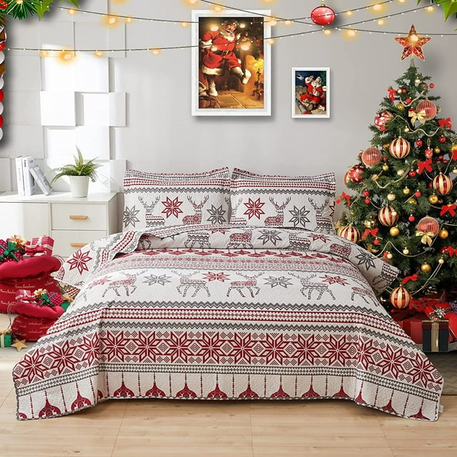 The red Christmas reversible bedspread printed with reindeer, snowflake and lantern is made of high quality microfiber, which is not only soft, smooth, but also breathable and has a natural scent. Red bed cover is made by ultrasonic technology and it is suitable for four seasons. Reindeer bedspread is made of high-quality 100% microfiber material and it double-brushed on both sides. Jessy Home quilt set decorates your bedroom with unique cartoon patterns to create a Xmas atmosphere and it is suitable as a gift to friend, relative, lover and so on. Jessy Home bedding set can be machine washing and it is easy care and clean.