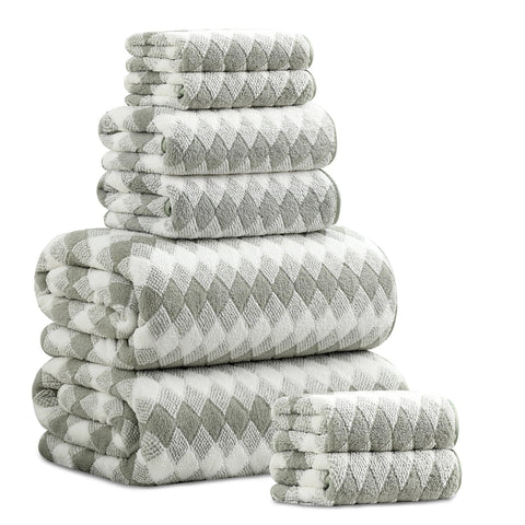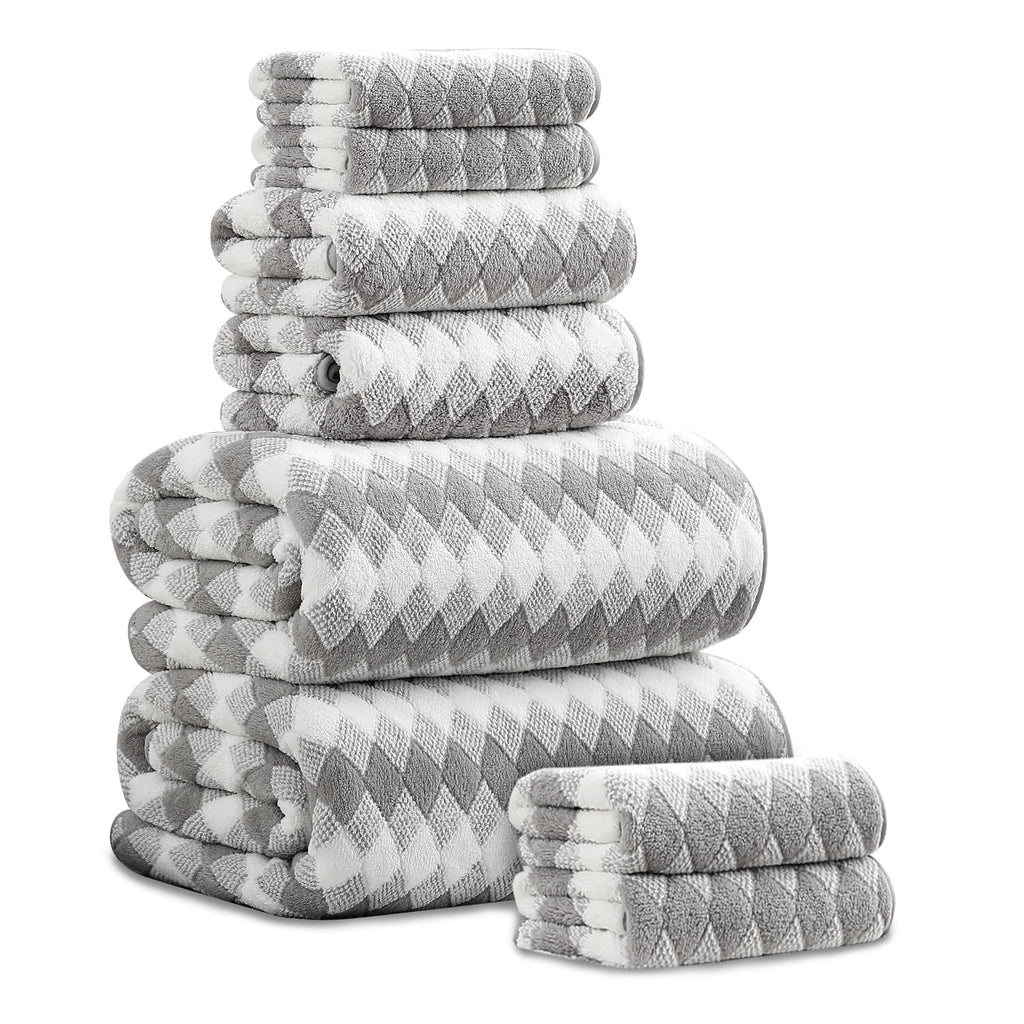 Beartech 8 Piece Microfiber Bath Towel Set 2 Oversized Bath Sheet,2 Hand Towels and 4 Washcloths